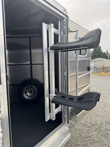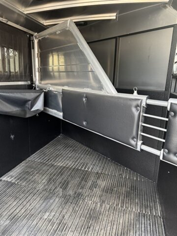 Moving to the interior, the horse area is designed with the well-being of your horses in mind. The spacious stalls provide ample room for two horses to travel comfortably, with padded dividers to prevent shifting and potential injuries during transit. The interior is well-ventilated with multiple sliding windows and roof vents, promoting air circulation and a comfortable environment for your horses.