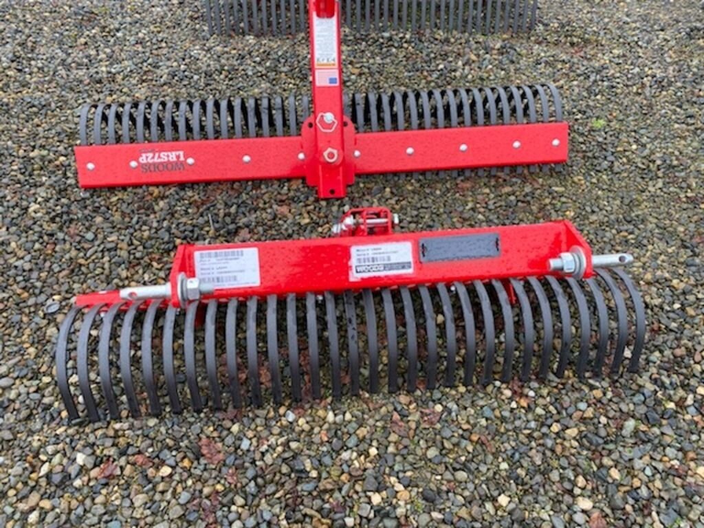 Woods® Landscape Rakes LRS60 Features may include: Great for clean-up jobs and fine raking Heavy pivot components increase product longevity Large, structural tine beam channel holds alloy spring steel tines firmly Fast, easy and safe hook-ups with ASABE quick-hitch compatibility
