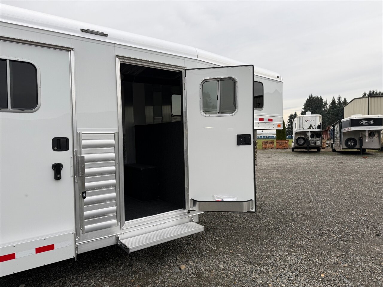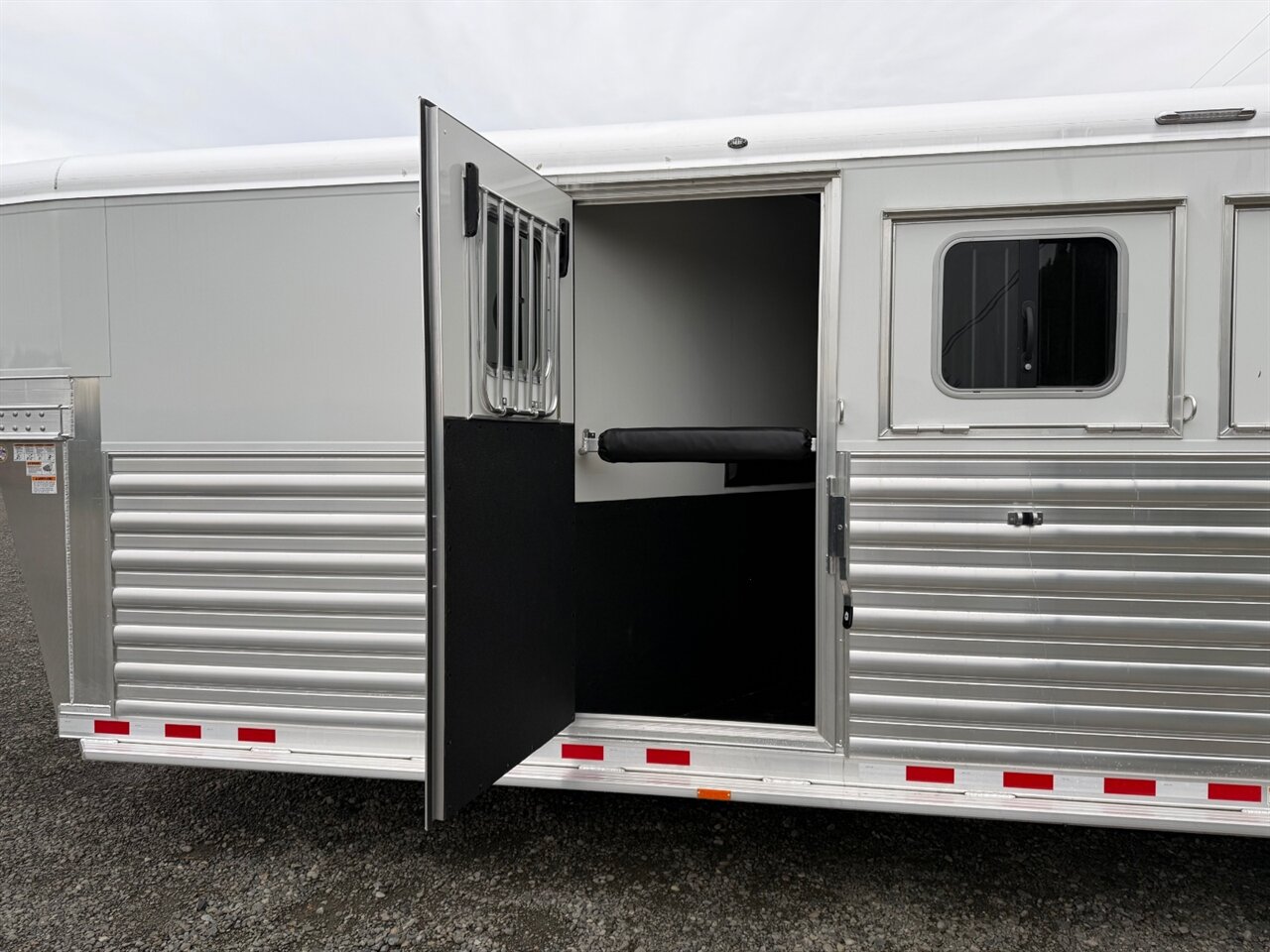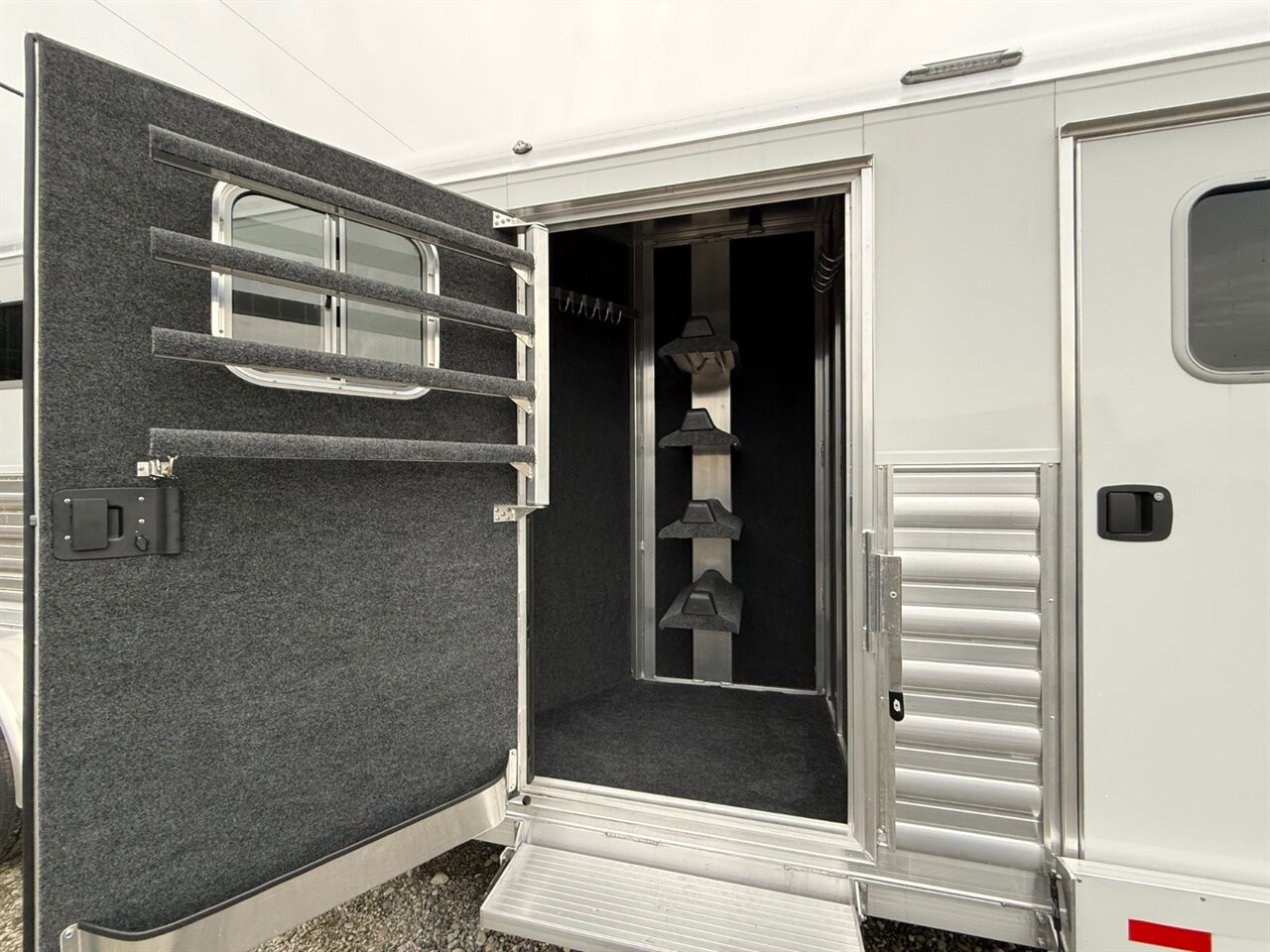 With its thoughtful features and rugged aluminum build, this trailer offers both comfort for your horses and convenience for you. From the well-equipped dressing room to the practical side tack and safety-focused escape door, every detail has been designed with horse and rider in mind.
