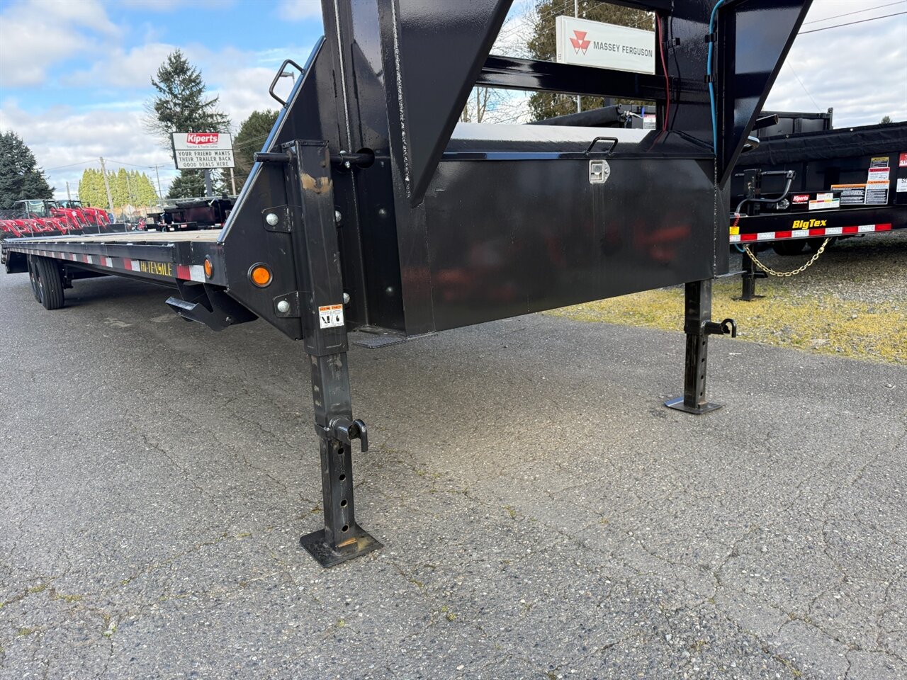 - **Axles and Suspension:** Equipped with dual 8,000-pound axles, the trailer is designed for heavy loads. The heavy-duty slipper spring suspension ensures a smooth ride and minimizes wear on both the trailer and the vehicle.