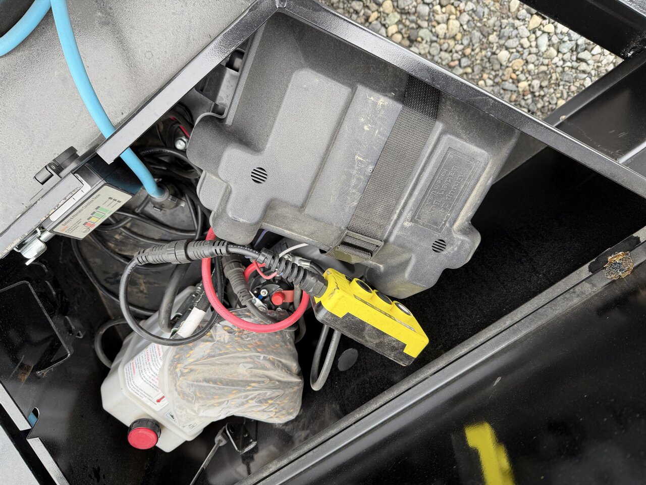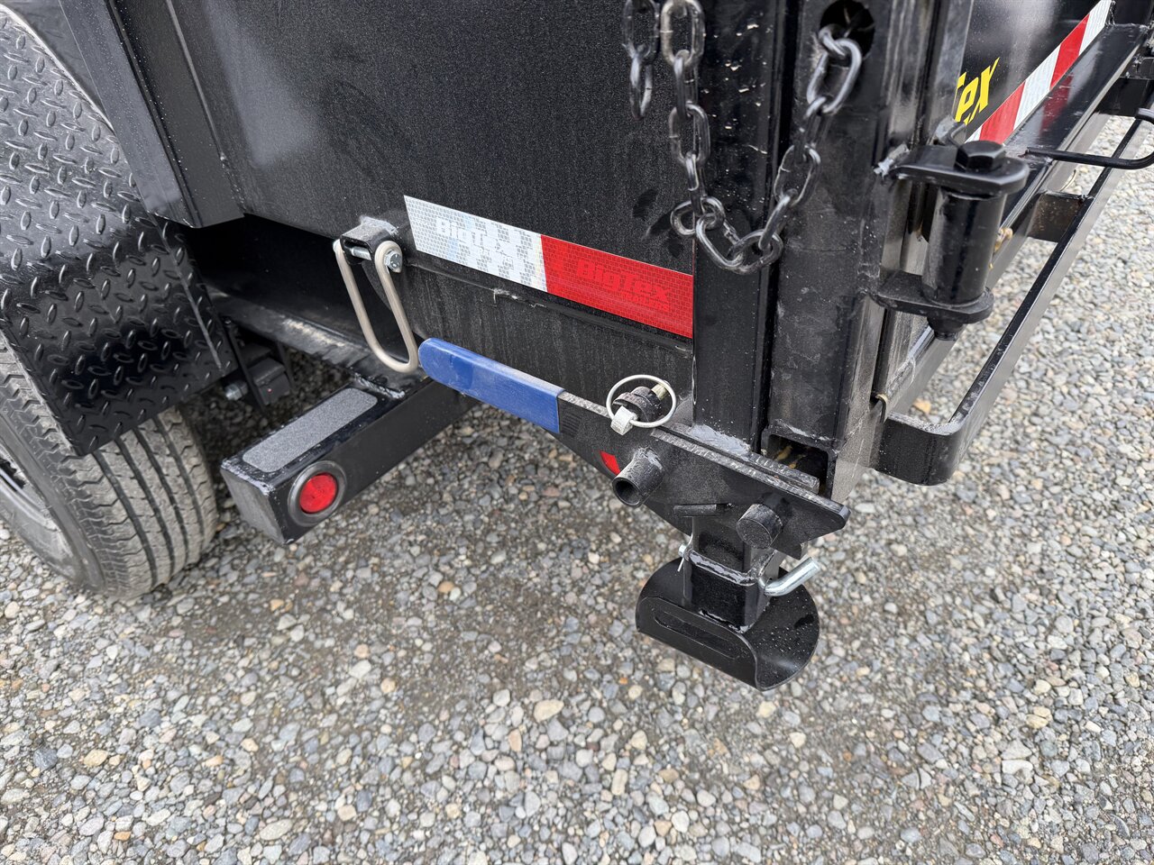 - **Safety Features:** The trailer includes safety chains and a breakaway switch for added security during transport. Reflective tape is strategically placed around the trailer for enhanced visibility, ensuring safety during nighttime operations.