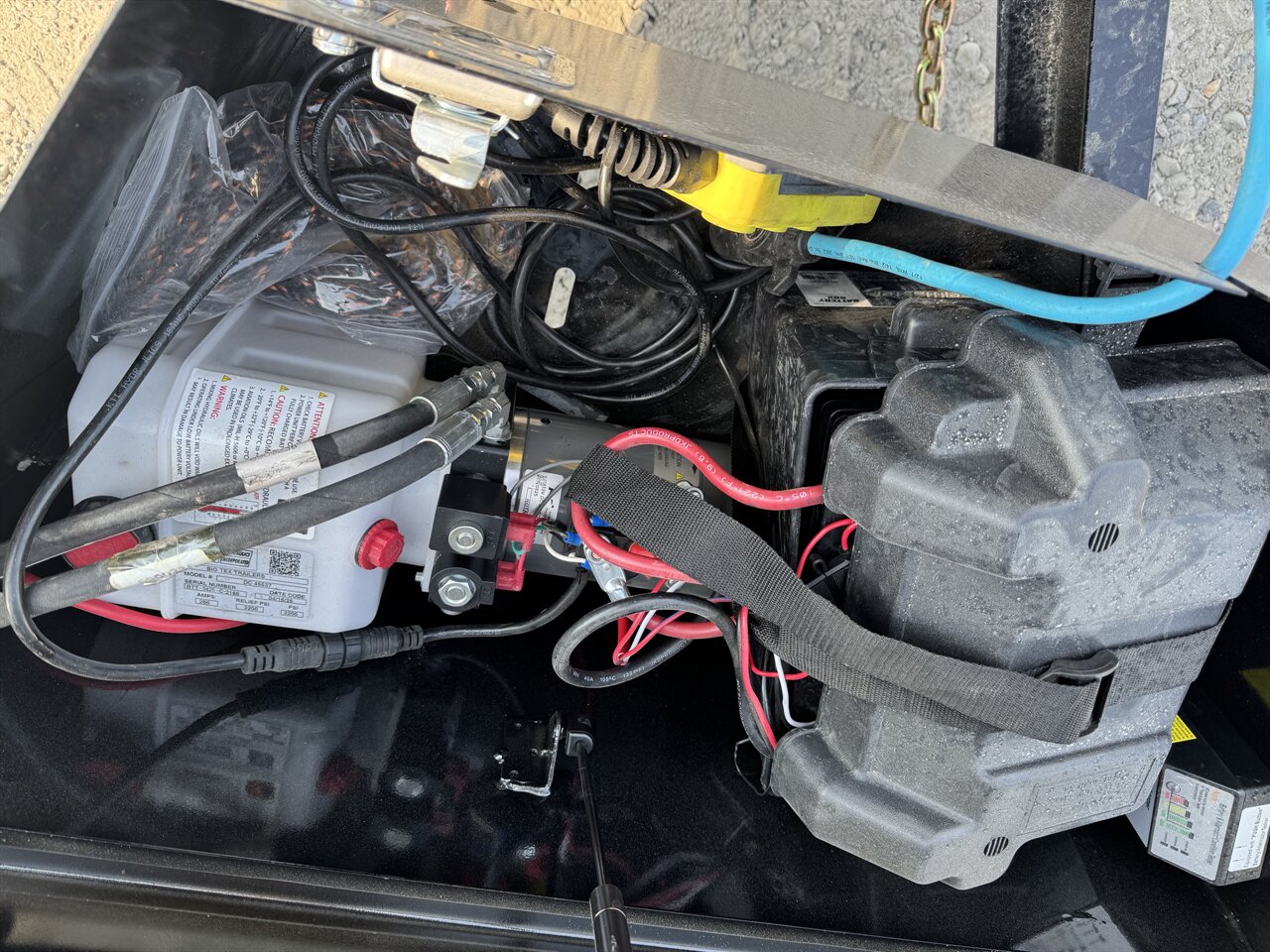 - **Dump System:** This model is equipped with a hydraulic dump system, providing efficient unloading capabilities. The trailer can be raised with the push of a button, allowing for quick and easy disposal of materials.