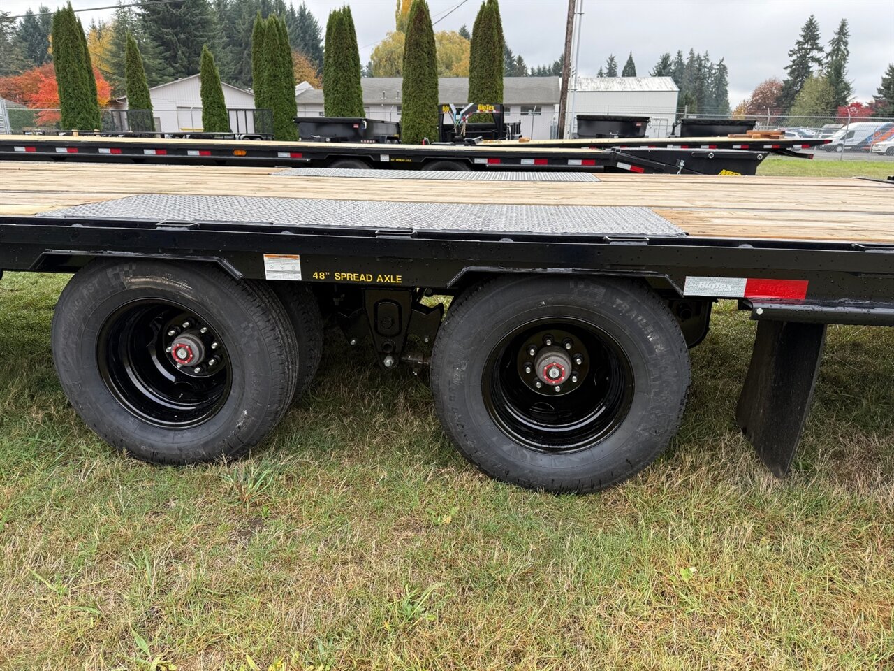 - **Decking:** The trailer is equipped with a wood floor providing a sturdy surface for transporting equipment and vehicles.