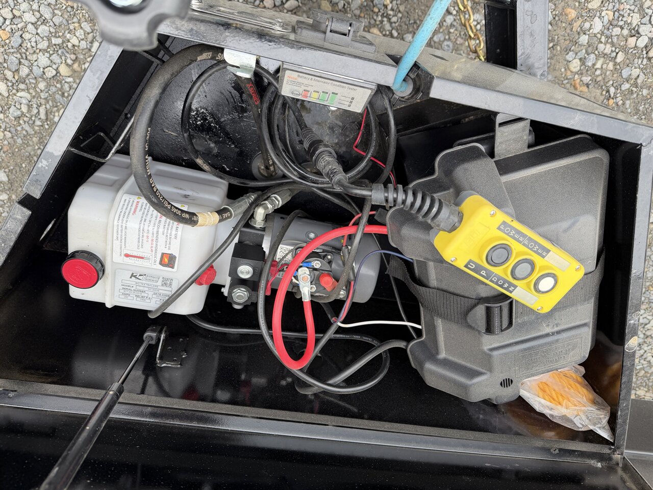 - **Hydraulic Dump System:** The trailer is equipped with a hydraulic dump system, allowing for effortless unloading of materials. The hydraulic pump is powered by a 12V deep cycle battery, providing reliable operation.
