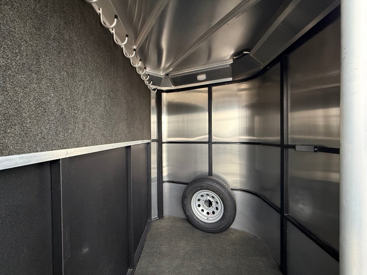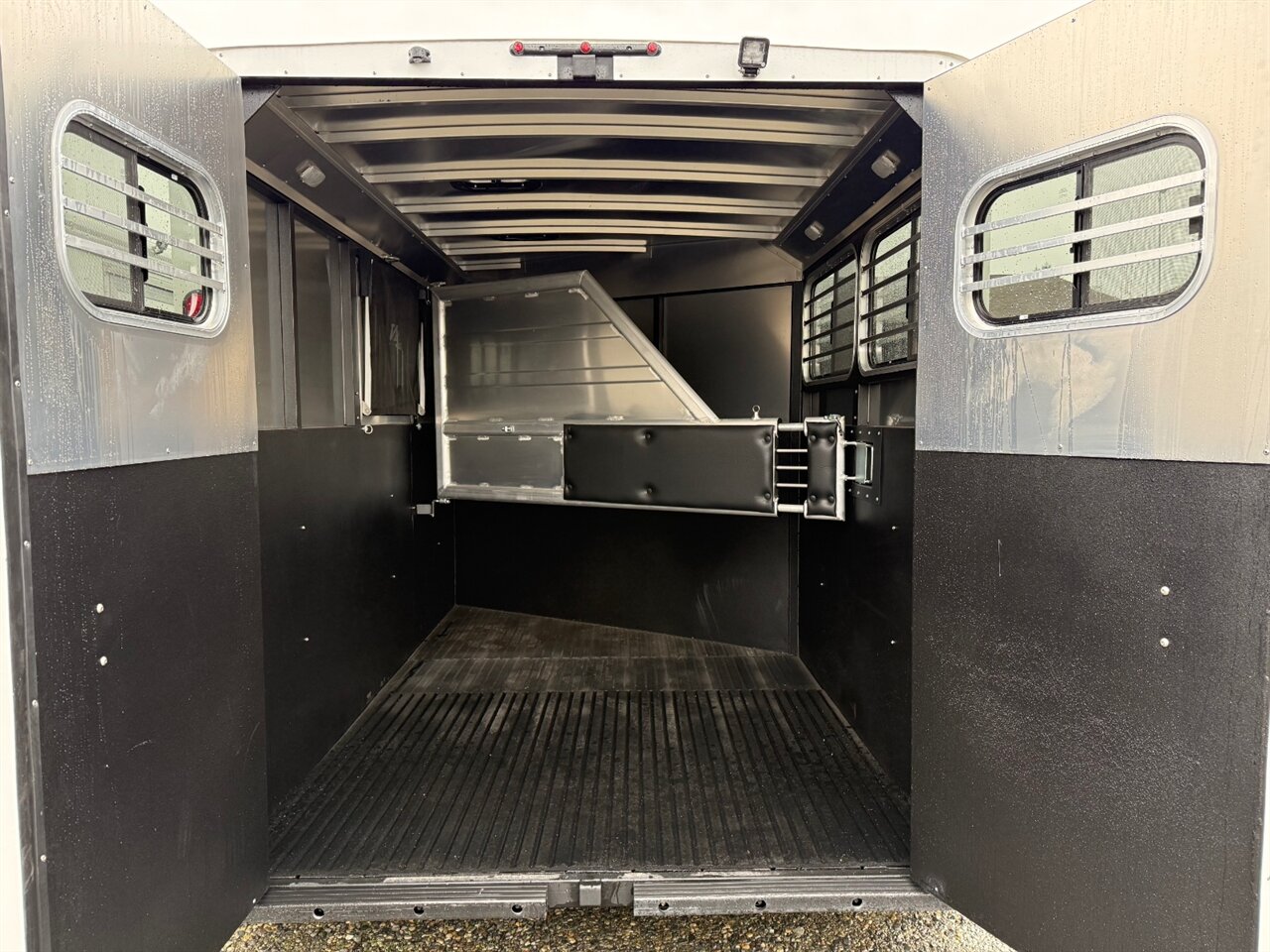 5. **Tack Storage**: The integrated tack room provides ample space for storing saddles, bridles, and other equestrian gear. It is designed for easy access and organization, making your travel experience more efficient.