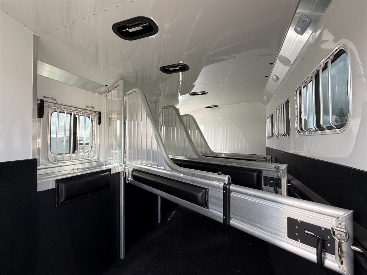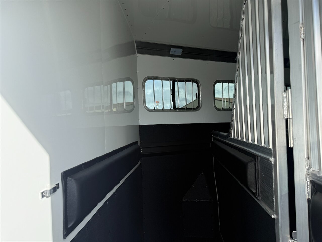 Built with 4-Star’s renowned all-aluminum construction, this trailer delivers long-lasting performance while remaining lightweight and easy to tow. Inside, your horses travel in comfort with insulated roofing to help regulate temperature and a stud divider configuration for added safety and flexibility.